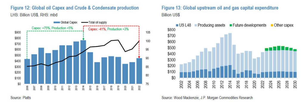 摩根大通已经确定了全球石油行业未来有250个项目,总产能达到690万桶/日。理论上这可以这一供应缺口,但显然,并非所有项目都能顺利进行,只有达到一定门槛的项目才可以。